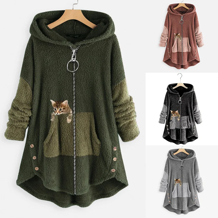 Γυναικείο πουλόβερ μεγάλου μεγέθους με κουκούλα φθινοπώρου και χειμώνα 2023